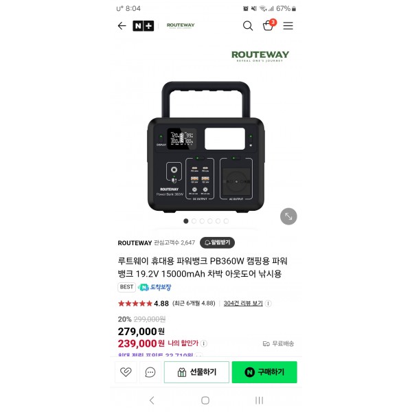 • 루트웨이 캠핑용 파워뱅크